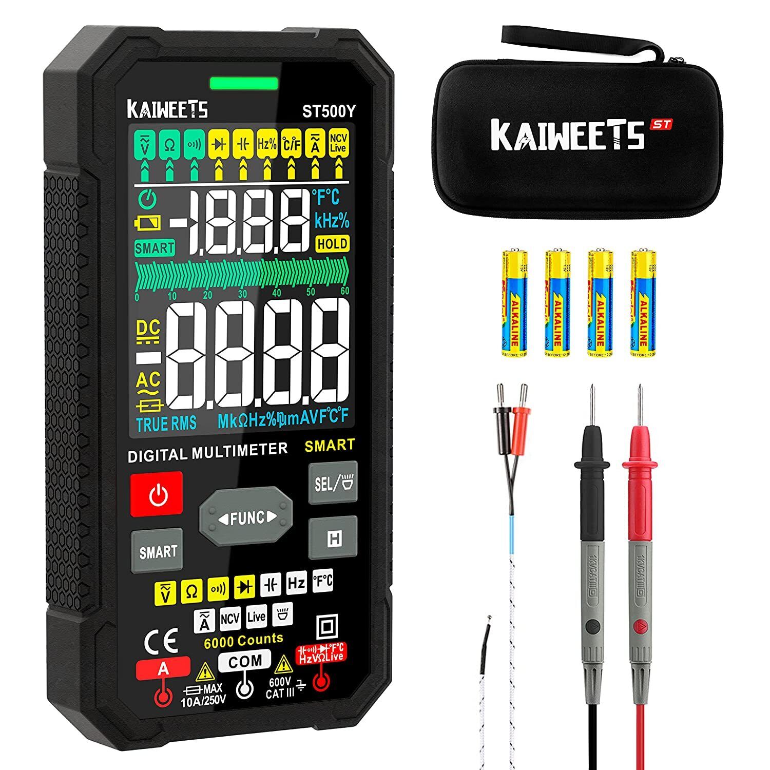 KAIWEETS ST500Y Digital Multimeter Voltmeter Ohmmeter 6000 Counts Auto-range