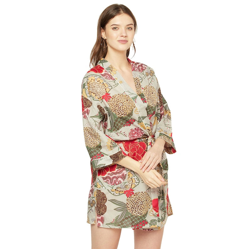 A beautiful Frida Kahlo inspired kimono robe for a super price. Perfect as a kimono, robe or a kaftan. Made from super comfy light weight cotton cambric so treat yourself to ultimate comfort whether you are simply winding up at night, getting ready for the morning or just cozying up in your lounge to binge watch a movie on Netflix.