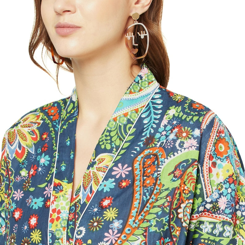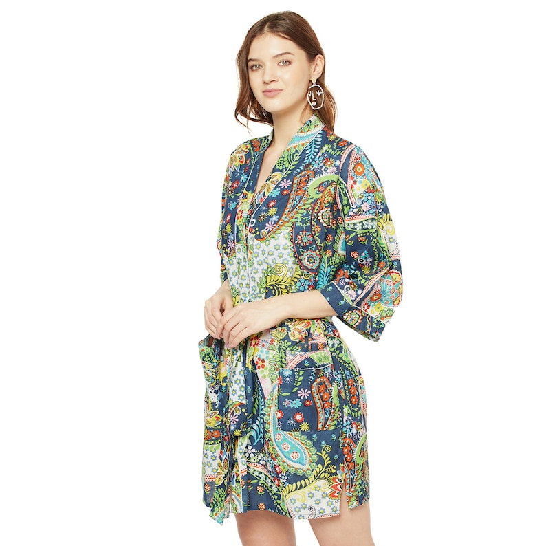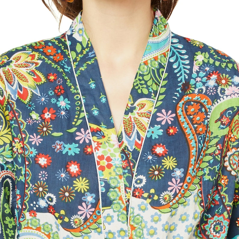 A beautiful Frida Kahlo inspired kimono robe for a super price. Perfect as a kimono, robe or a kaftan. Made from super comfy light weight cotton cambric so treat yourself to ultimate comfort whether you are simply winding up at night, getting ready for the morning or just cozying up in your lounge to binge watch a movie on Netflix.