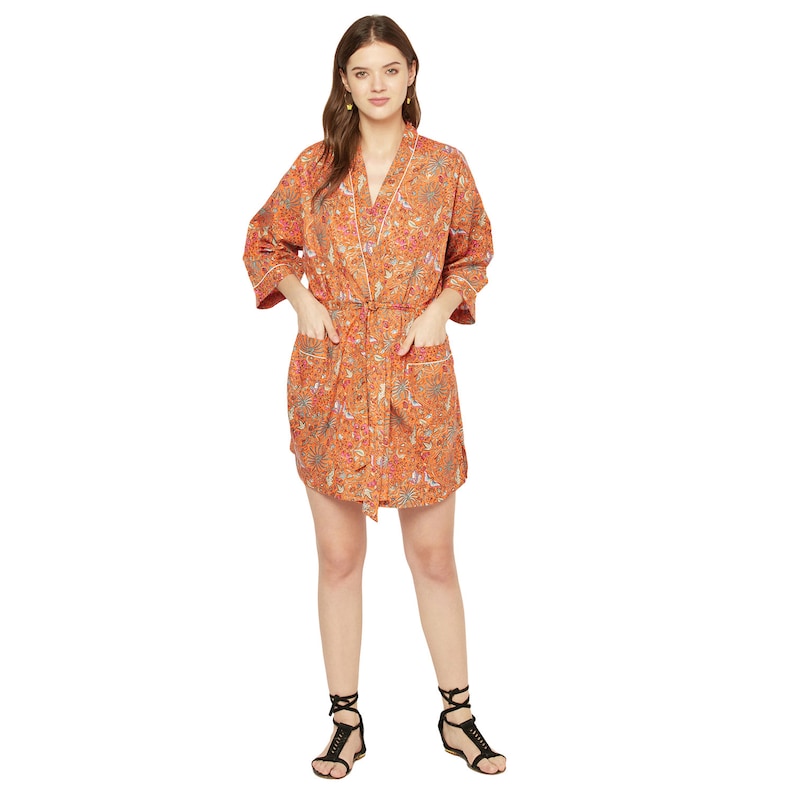 A beautiful Frida Kahlo inspired kimono robe for a super price. Perfect as a kimono, robe or a kaftan. Made from super comfy light weight cotton cambric so treat yourself to ultimate comfort whether you are simply winding up at night, getting ready for the morning or just cozying up in your lounge to binge watch a movie on Netflix.