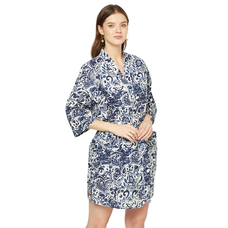 A beautiful Frida Kahlo inspired kimono robe for a super price. Perfect as a kimono, robe or a kaftan. Made from super comfy light weight cotton cambric so treat yourself to ultimate comfort whether you are simply winding up at night, getting ready for the morning or just cozying up in your lounge to binge watch a movie on Netflix.