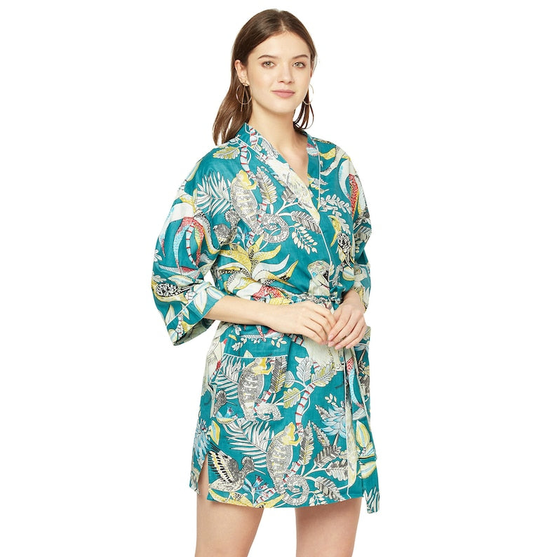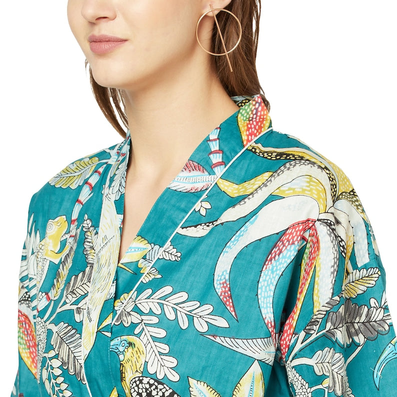 A beautiful Frida Kahlo inspired kimono robe for a super price. Perfect as a kimono, robe or a kaftan. Made from super comfy light weight cotton cambric so treat yourself to ultimate comfort whether you are simply winding up at night, getting ready for the morning or just cozying up in your lounge to binge watch a movie on Netflix.