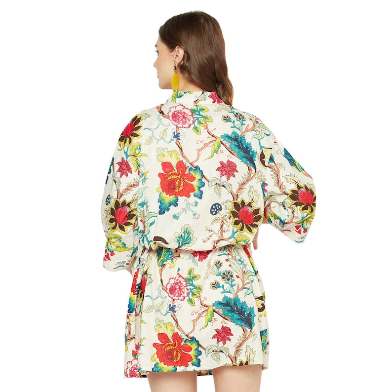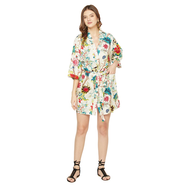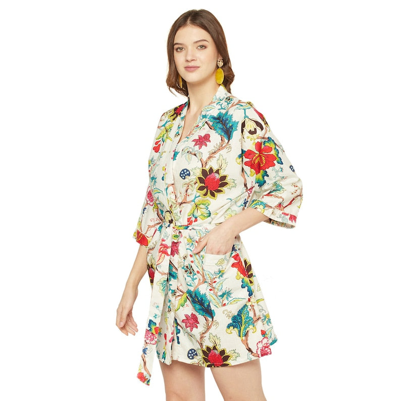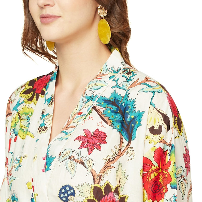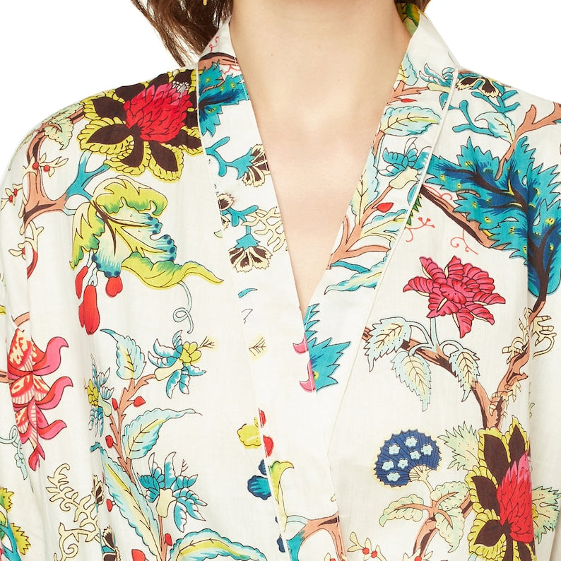 A beautiful Frida Kahlo inspired kimono robe for a super price. Perfect as a kimono, robe or a kaftan. Made from super comfy light weight cotton cambric so treat yourself to ultimate comfort whether you are simply winding up at night, getting ready for the morning or just cozying up in your lounge to binge watch a movie on Netflix.