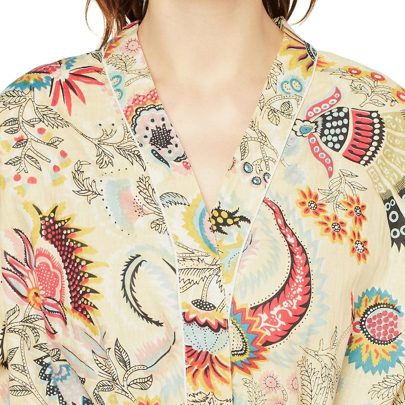 A beautiful Frida Kahlo inspired kimono robe for a super price. Perfect as a kimono, robe or a kaftan. Made from super comfy light weight cotton cambric so treat yourself to ultimate comfort whether you are simply winding up at night, getting ready for the morning or just cozying up in your lounge to binge watch a movie on Netflix.