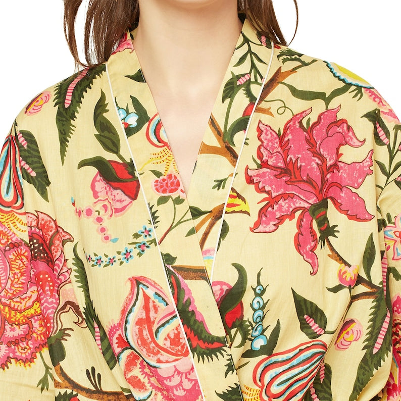 A beautiful Frida Kahlo inspired kimono robe for a super price. Perfect as a kimono, robe or a kaftan. Made from super comfy light weight cotton cambric so treat yourself to ultimate comfort whether you are simply winding up at night, getting ready for the morning or just cozying up in your lounge to binge watch a movie on Netflix.