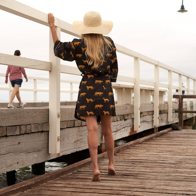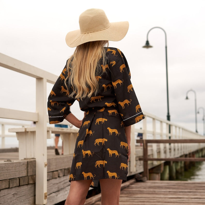 Kimono Cotton Kimono Bathrobe Frida Valentines Day GiftBird Bathrobe Turkish Bathrobe Cardigan Nightwear Dressing Gown Beach - Black Cheetah SCK51