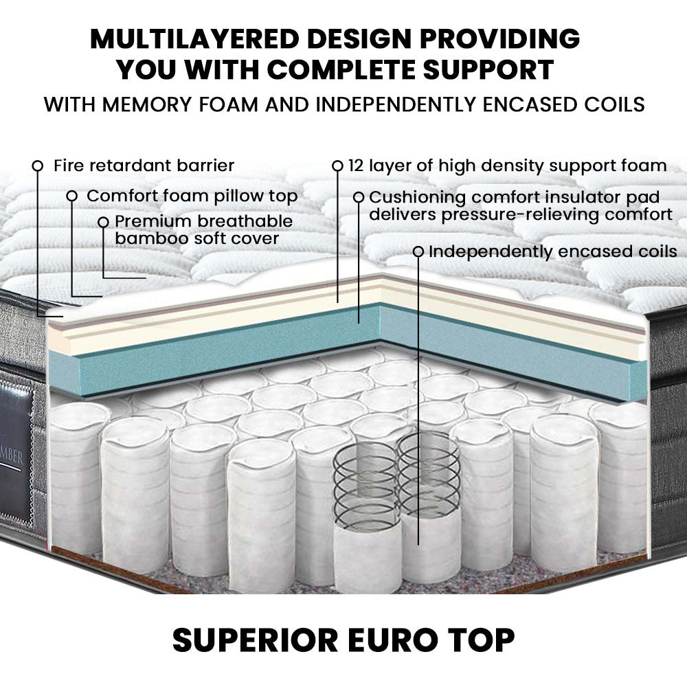 Kingston Slumber mattresses come with 6 Coil-9 Zone thick banded pocket springs, that ensure you experience the most tranquil sleep. When you change position, the EuroTop exterior lining engages an effective flow of air in and out of the mattress. All these features work in harmony to deliver a state-of-the-art therapeutic mattress solution that will provide consistency in your sleep cycle well into the future.