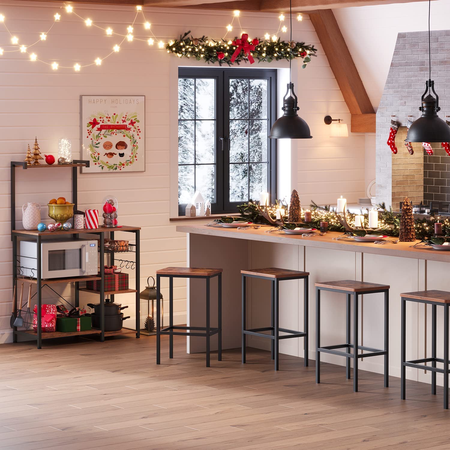 Snazzy Style: If you're looking to add style to your kitchen but don't want to break the bank with a complete overhaul, then this baker's rack mingling rustic brown and matte black together is the perfect solution that adds charming style