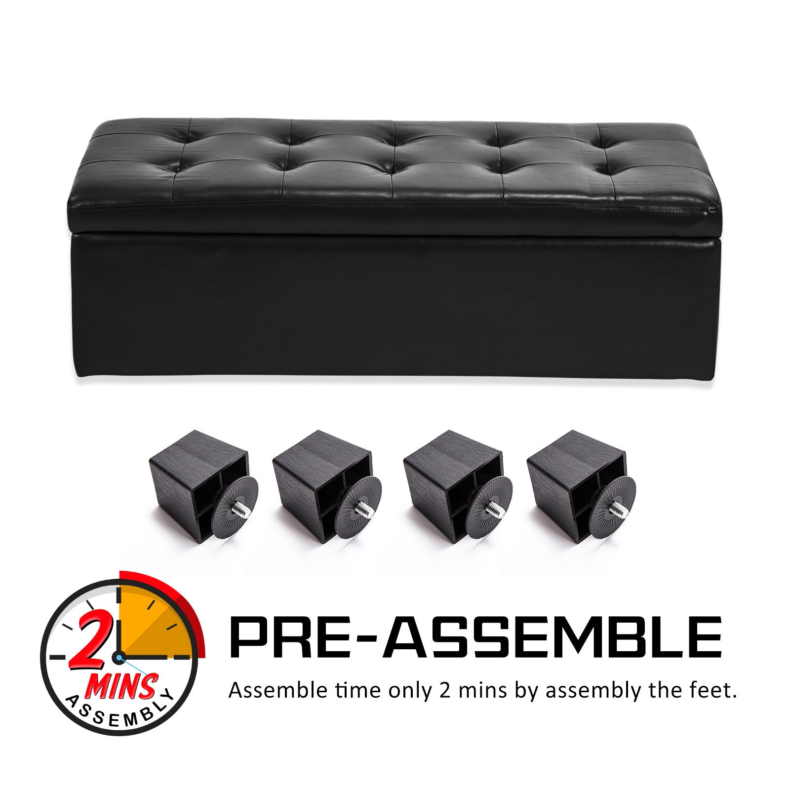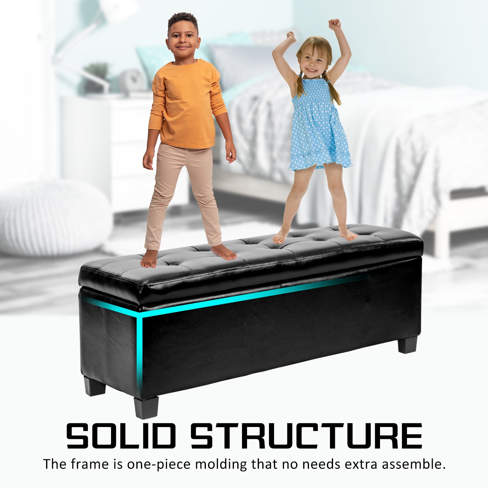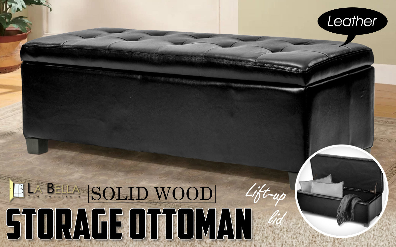 La Bella Storage Ottoman Foot Stool 102cm Leather Blanket Box Chest Toy - Black