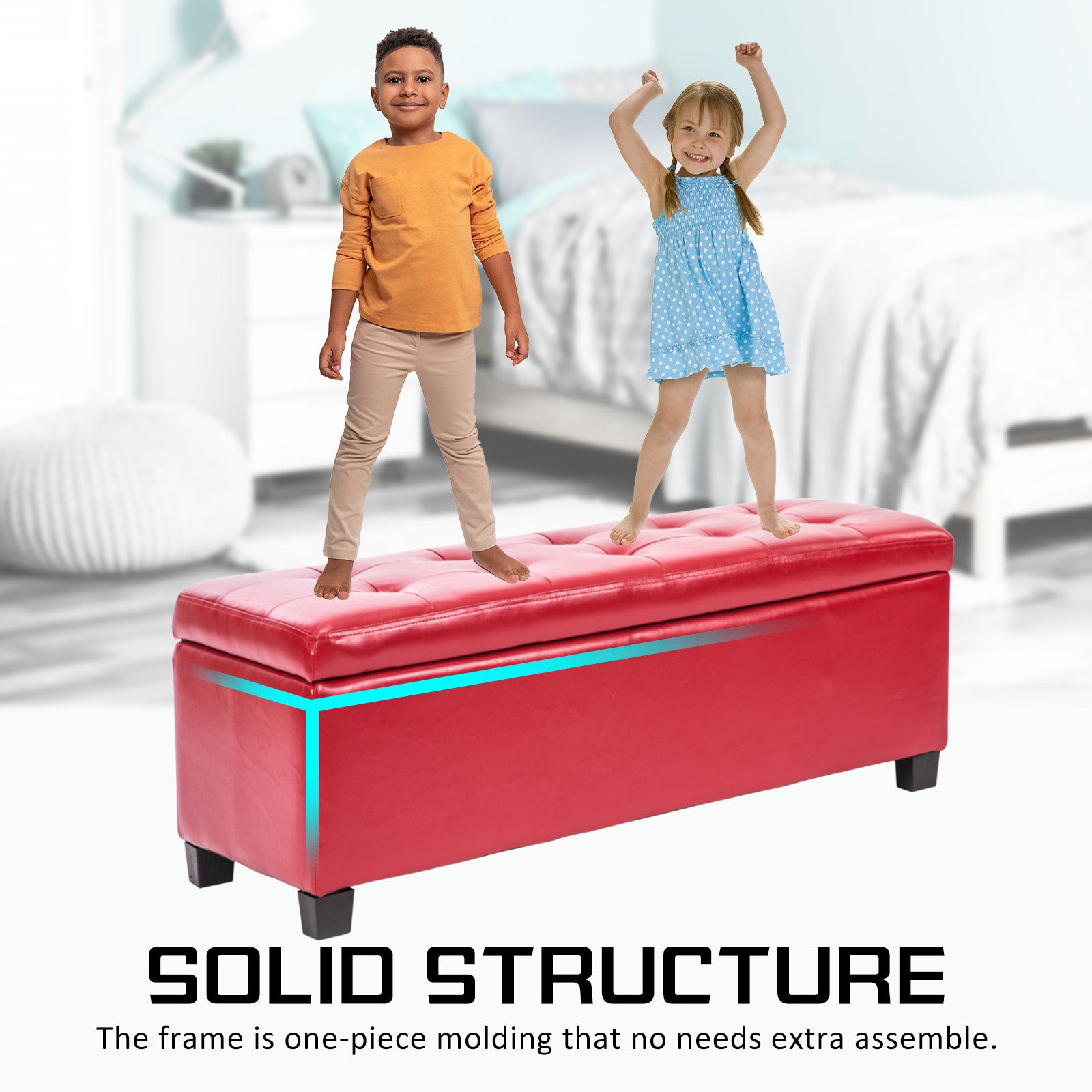 La Bella Storage Ottoman Foot Stool 102cm Leather Blanket Box Chest Toy - Red