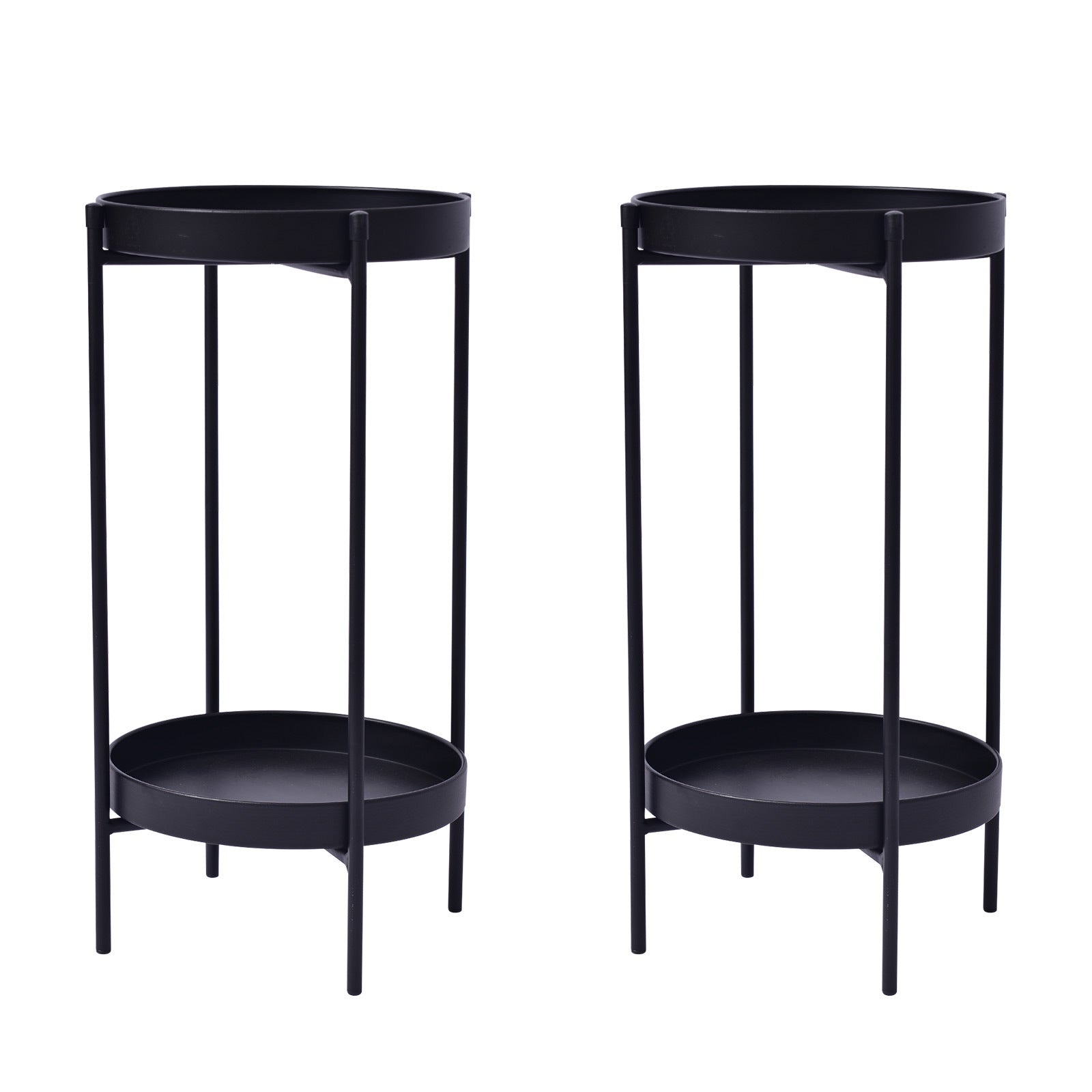La Bella 2 Set Plant Stand Planter Shelf Rack Steel 2 Tier 50cm - Black