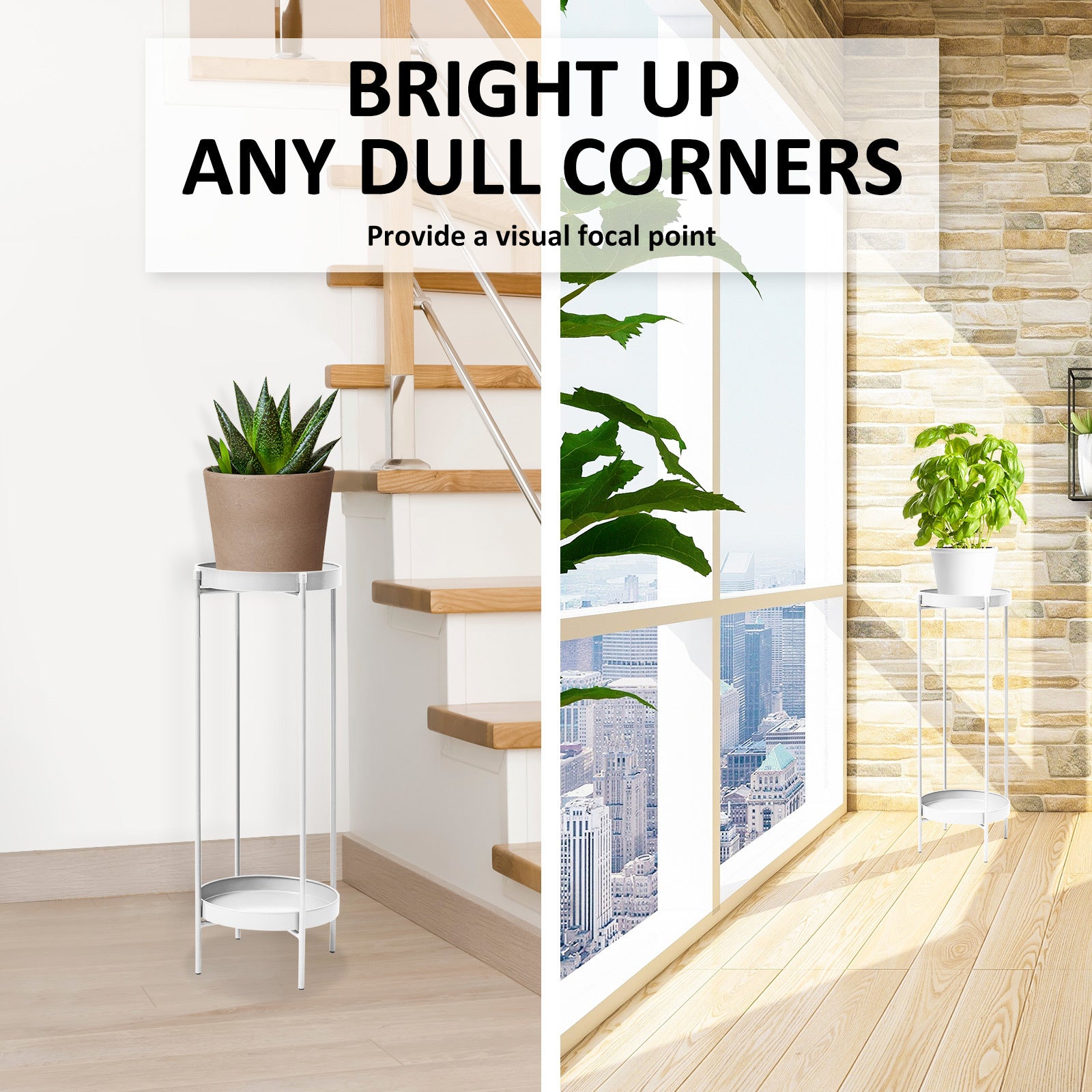 La Bella Plant Stand Planter Shelf Rack Steel 2 Tier 80cm - White