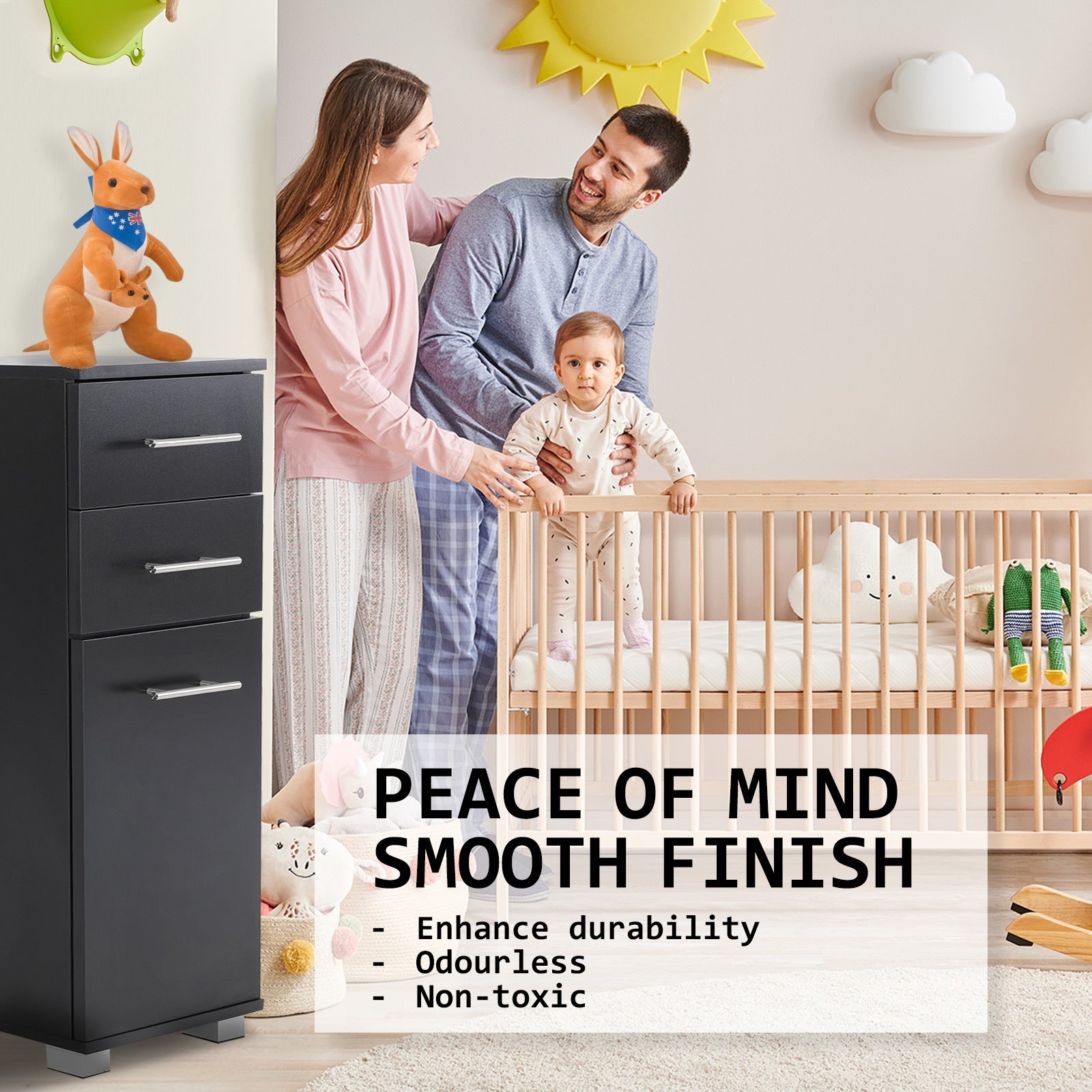 La Bella Bathroom Storage Cabinet 88cm Organiser Cupboard Drawer Tall Slim - Black