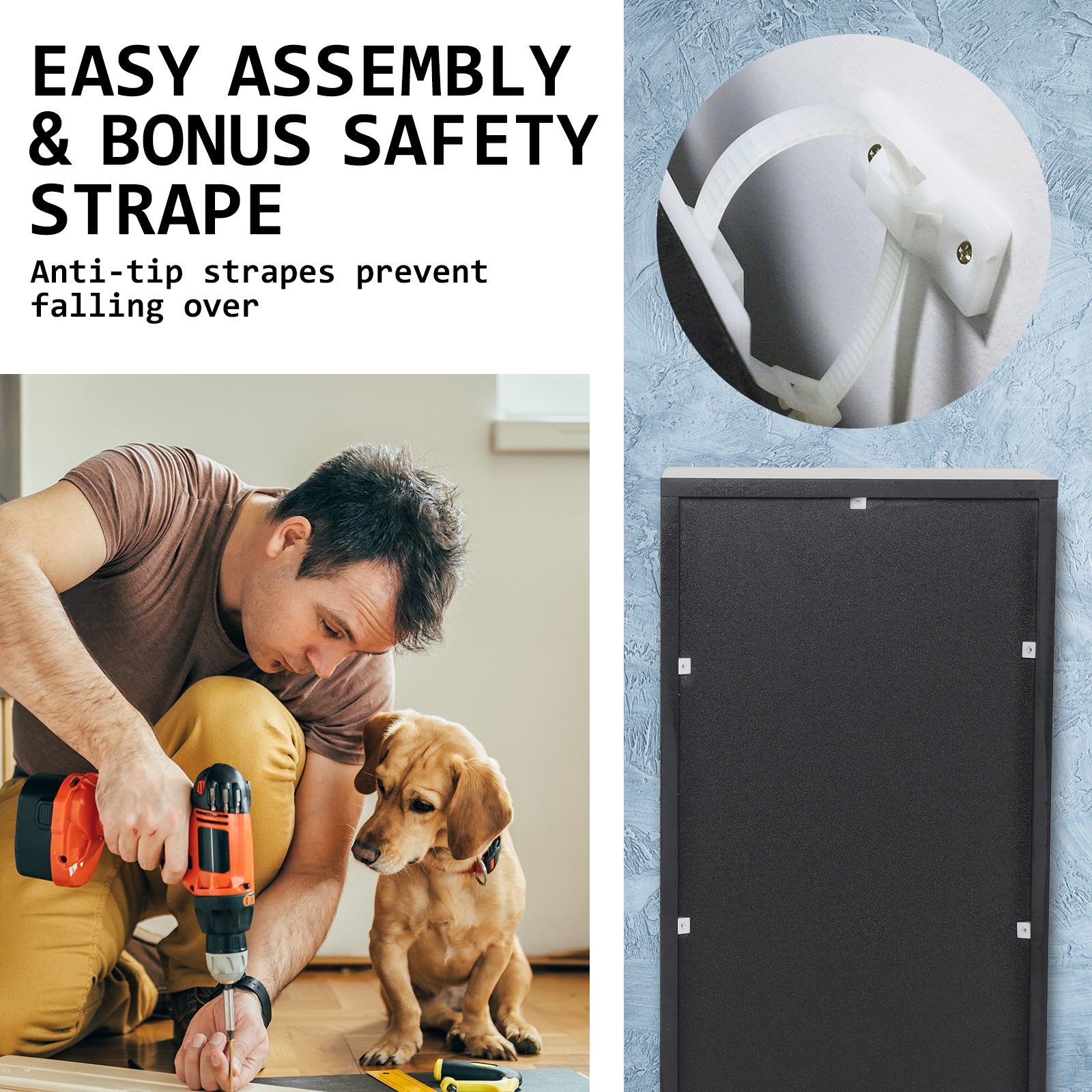 Not least, the storage cabinet is made of environmental-friendly wood covered with melamine finish for extra durability. Plus, this product is made from a non-toxic chemical keeping the safety of your family in mind.