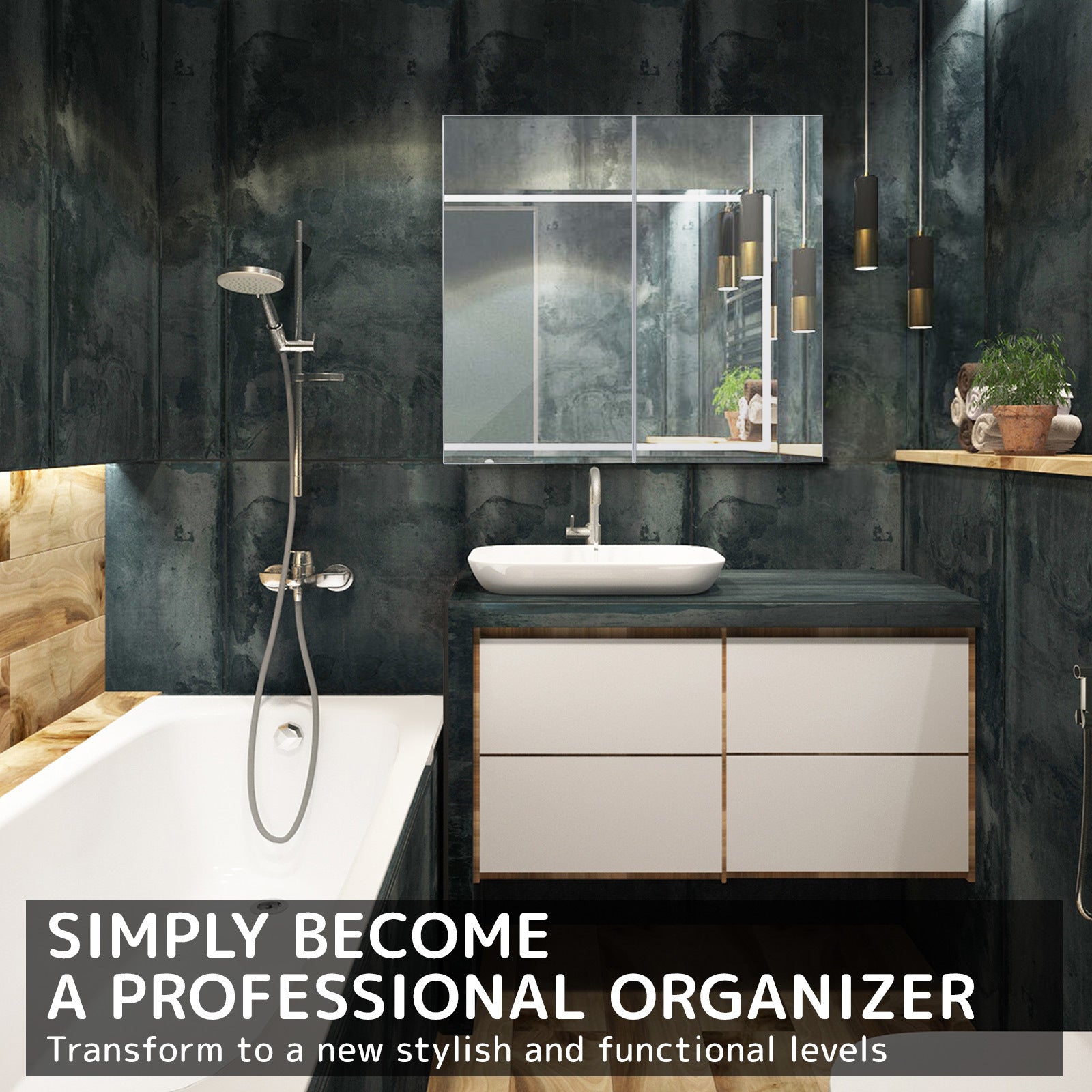 Besides, the copper-free mirror reduces corrosion which offers lucid clarity when shaving or carrying out various facial care tasks. Not to mention its pencil edge and hidden handle mirror cabinet instantly align contemporary flair with a timeless design that works wonders in any room.