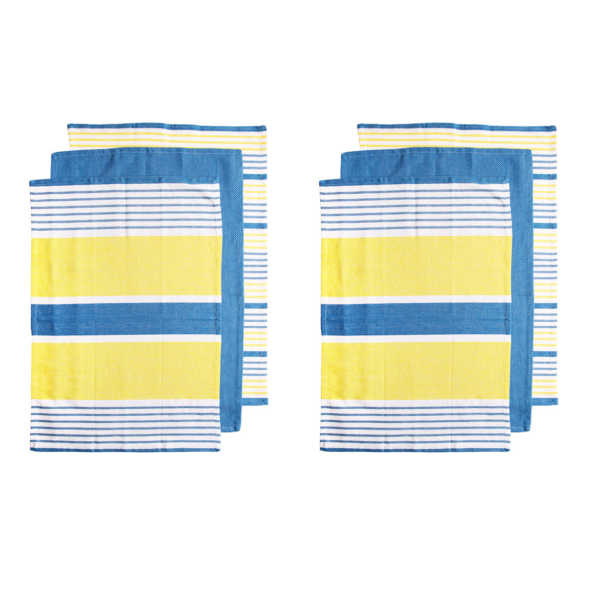 Ladelle Set of 6 Positano Stripe Cotton Kitchen Tea Towels 50 x 70 cm Yellow