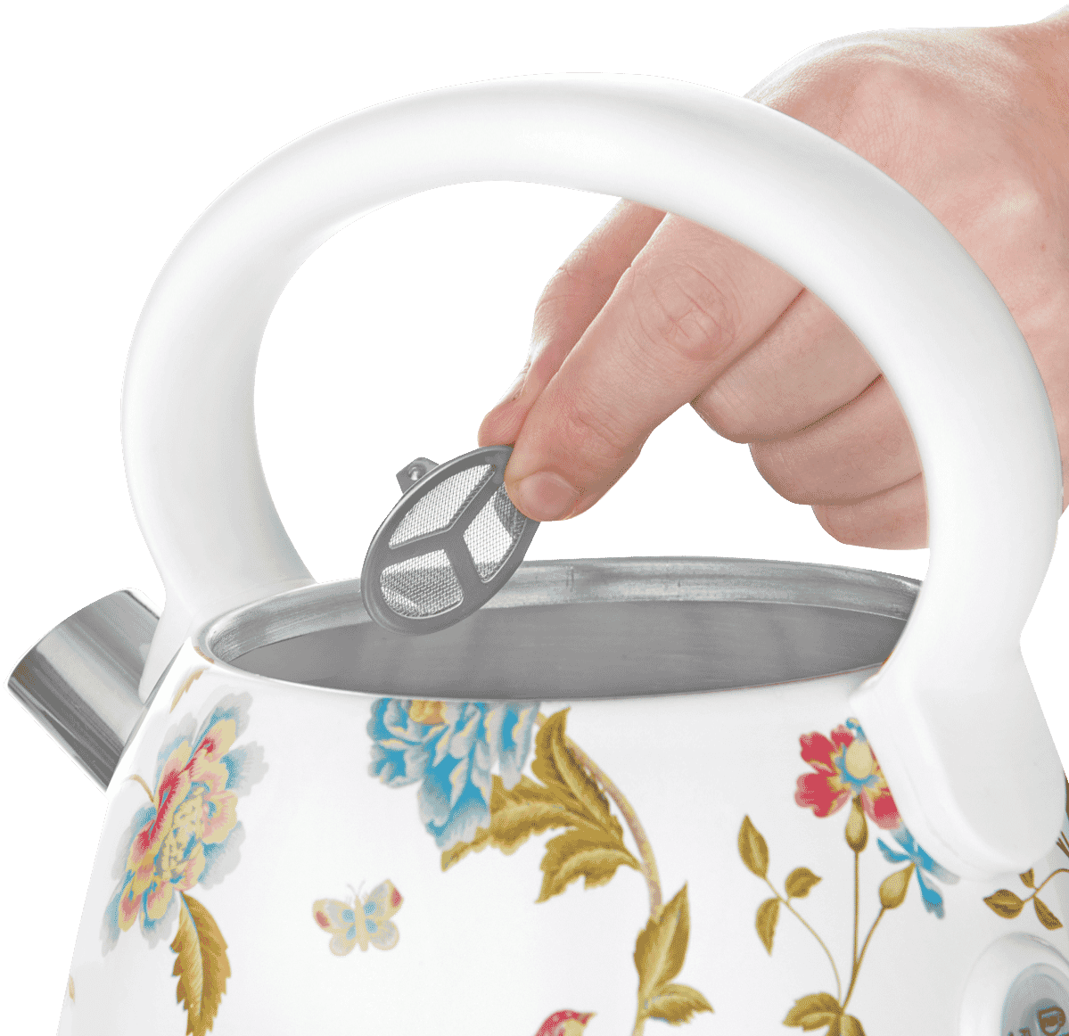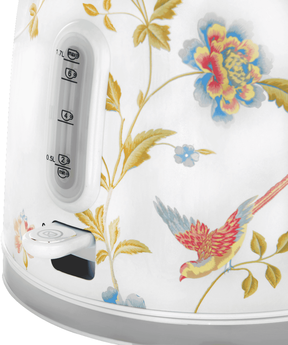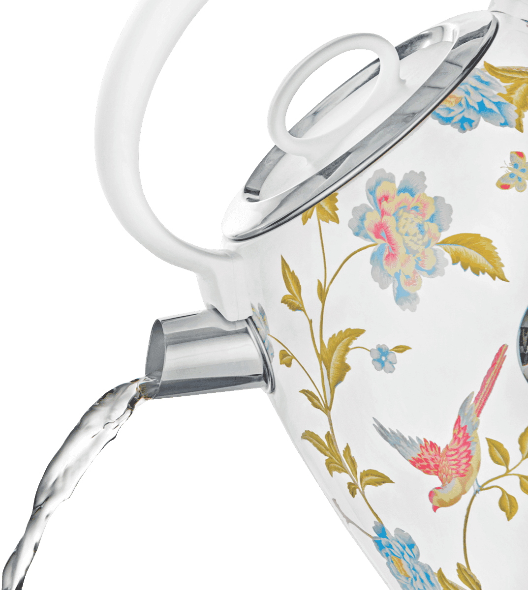Hand applied designer print, One cup boil, Accurate pouring spout, limescale filter, Fast boil |