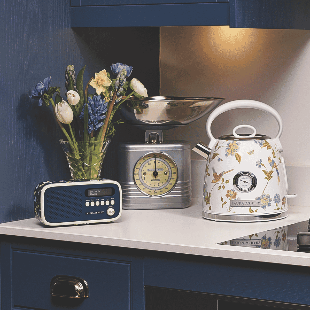This Laura Ashley kettle's 1.7 litre capacity enables you to boil enough water to make multiple cups of cocoa or tea. It's made of stainless steel. The Laura Ashley SBEK858WS has a white finish, so you can select a colour that matches your kitchen. It's a smart pick for boiling plenty of water for afternoon tea.