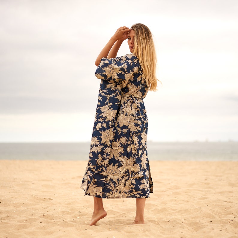 A beautiful Frida Kahlo inspired kaftan for a super price. Perfect as a kimono, robe or a kaftan. Made from super comfy light weight cotton cambric so treat yourself to ultimate comfort whether you are simply winding up at night, getting ready for the morning or just cozying up in your lounge to binge watch a movie on Netflix.