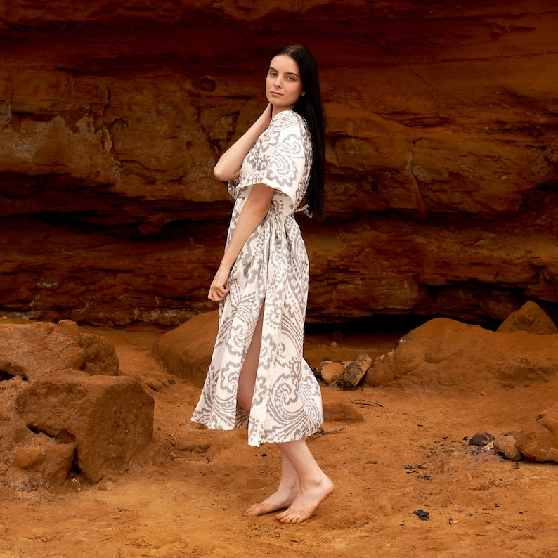 Linen Connections Cotton Kaftan Kimono Caridgan Summer Clothing Valentine Mother's Day Gift Maxi Dress Maternity Wear Christmas Gift for her | Off White