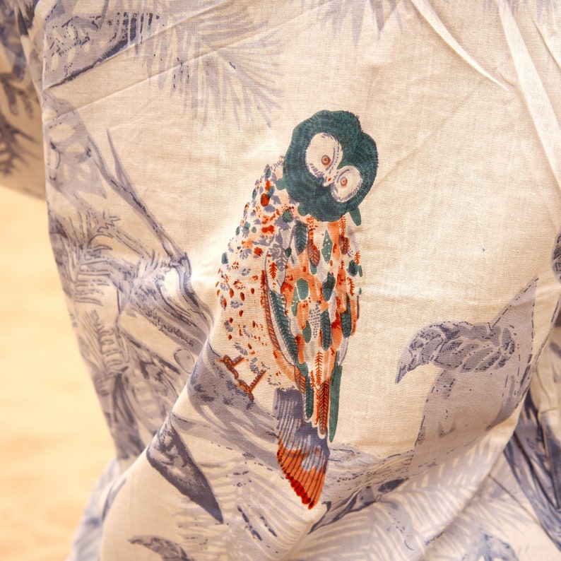 • Features bird of paradise inspired hand screen printed cotton fabric.