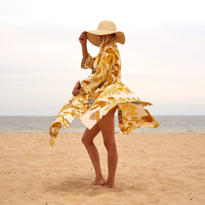 A beautiful Frida Kahlo inspired kimono robe for a super price. Perfect as a kimono, robe or a kaftan. Made from super comfy light weight cotton cambric so treat yourself to ultimate comfort whether you are simply winding up at night, getting ready for the morning or just cozying up in your lounge to binge watch a move on Netflix.