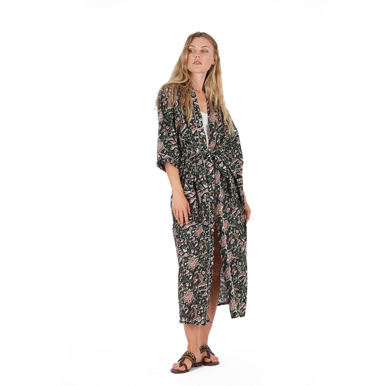 A beautiful Frida Kahlo inspired kimono robe for a super price. Perfect as a kimono, robe or a kaftan. Made from super comfy light weight cotton cambric so treat yourself to ultimate comfort whether you are simply winding up at night, getting ready for the morning or just cozying up in your lounge to binge watch a move on Netflix.