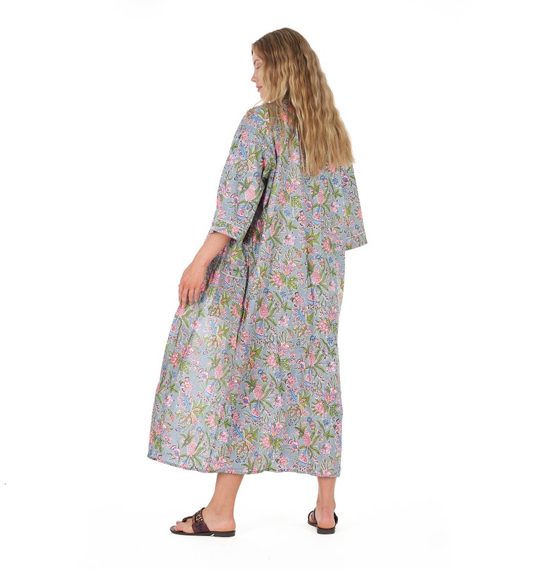 A beautiful Frida Kahlo inspired kimono robe for a super price. Perfect as a kimono, robe or a kaftan. Made from super comfy light weight cotton cambric so treat yourself to ultimate comfort whether you are simply winding up at night, getting ready for the morning or just cozying up in your lounge to binge watch a move on Netflix.
