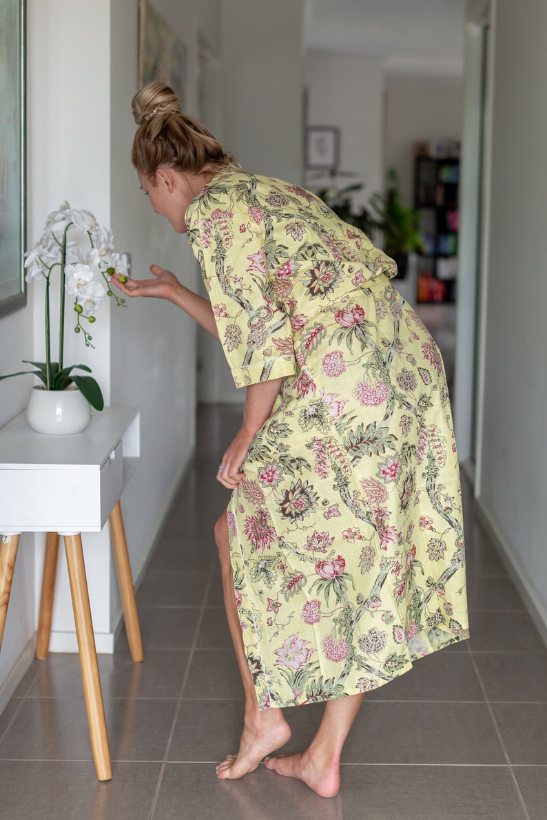 A beautiful Frida Kahlo inspired kimono robe for a super price. Perfect as a kimono, robe or a kaftan. Made from super comfy light weight cotton cambric so treat yourself to ultimate comfort whether you are simply winding up at night, getting ready for the morning or just cozying up in your lounge to binge watch a move on Netflix.