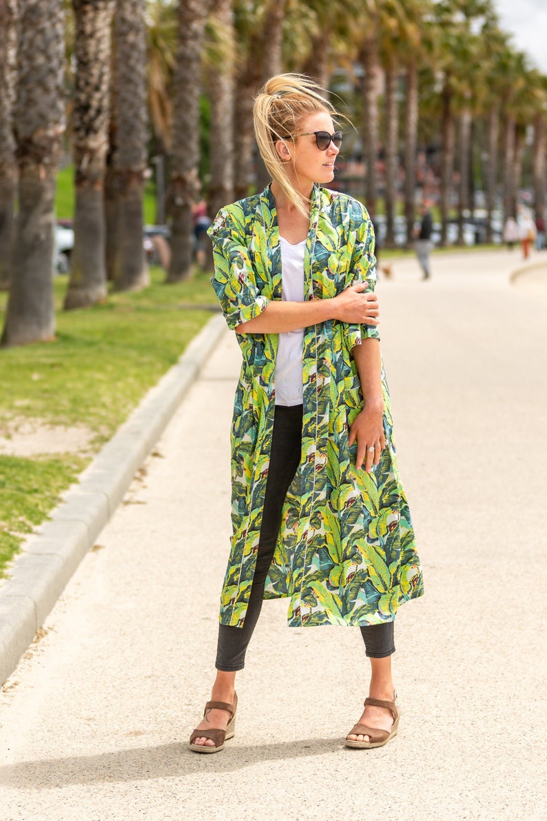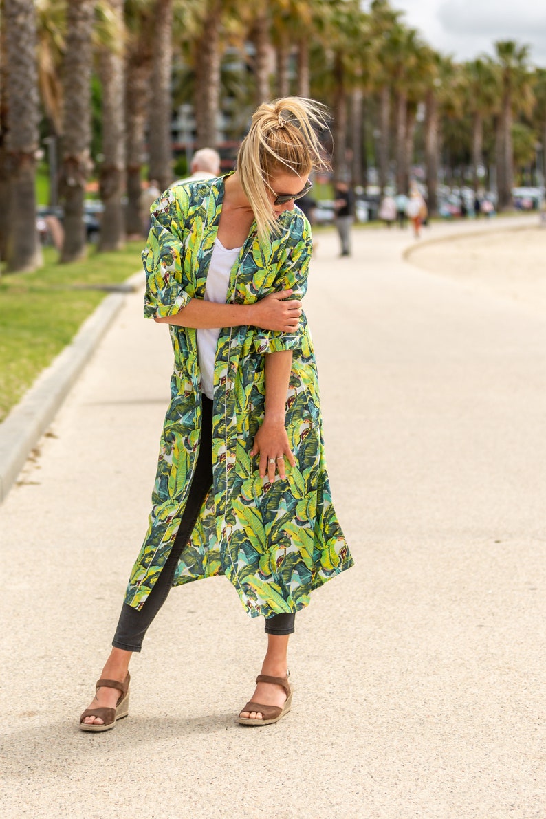 A beautiful Frida Kahlo inspired kimono robe for a super price. Perfect as a kimono, robe or a kaftan. Made from super comfy light weight cotton cambric so treat yourself to ultimate comfort whether you are simply winding up at night, getting ready for the morning or just cozying up in your lounge to binge watch a move on Netflix.