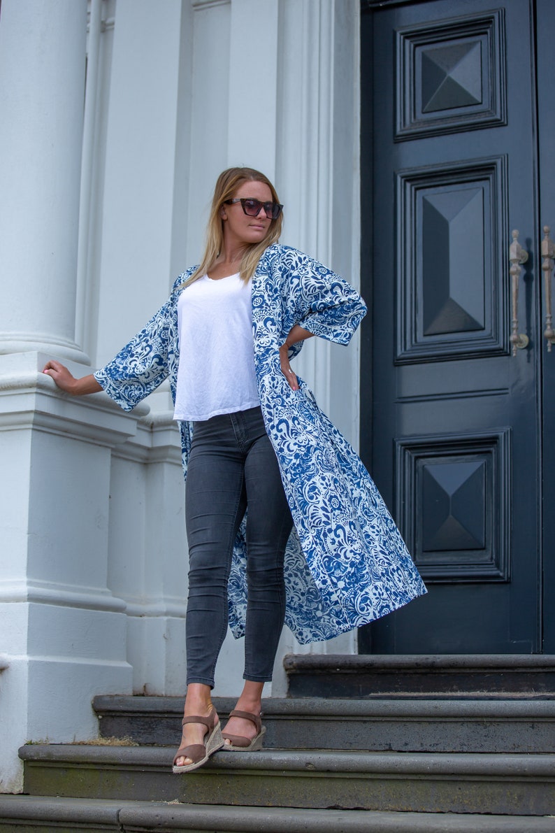 • Perfect use as a Kimono and Bathrobe. Can can be worn as a Kaftan, Cardigan or as a oversizes top over a dress.