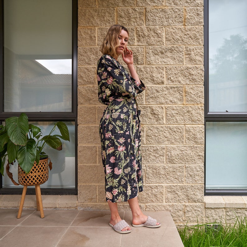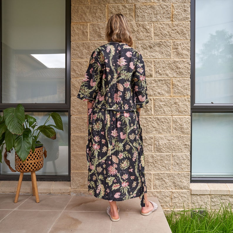 A beautiful Frida Kahlo inspired kimono robe for a super price. Perfect as a kimono, robe or a kaftan. Made from super comfy light weight cotton cambric so treat yourself to ultimate comfort whether you are simply winding up at night, getting ready for the morning or just cozying up in your lounge to binge watch a move on Netflix.