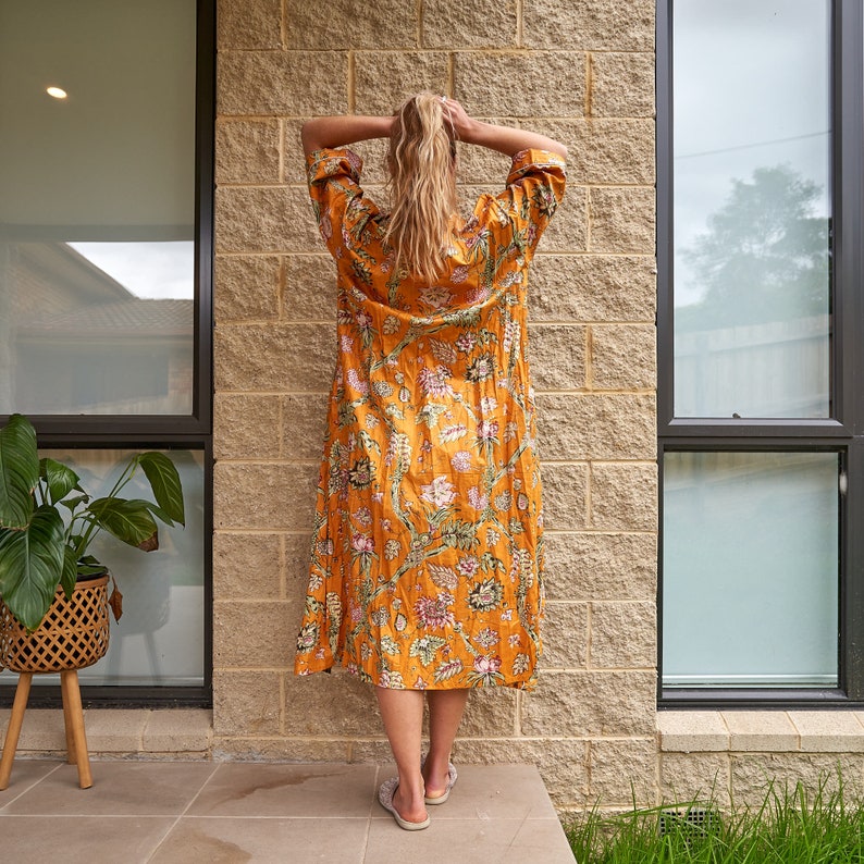 A beautiful Frida Kahlo inspired kimono robe for a super price. Perfect as a kimono, robe or a kaftan. Made from super comfy light weight cotton cambric so treat yourself to ultimate comfort whether you are simply winding up at night, getting ready for the morning or just cozying up in your lounge to binge watch a move on Netflix.