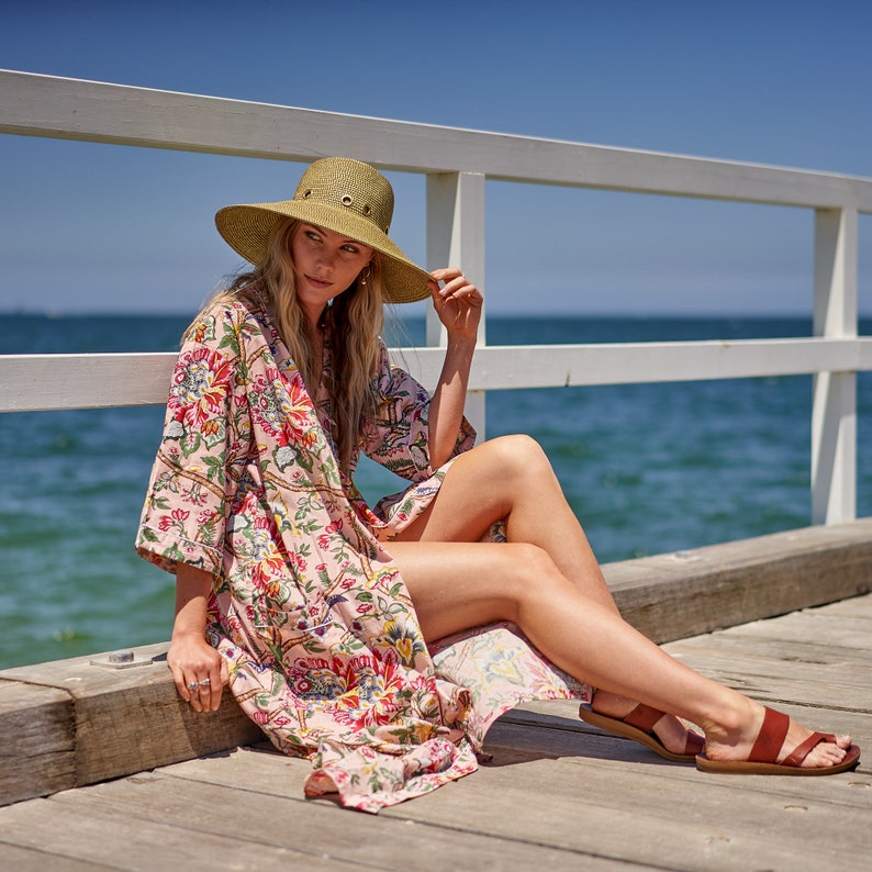 A beautiful Frida Kahlo inspired kimono robe for a super price. Perfect as a kimono, robe or a kaftan. Made from super comfy light weight cotton cambric so treat yourself to ultimate comfort whether you are simply winding up at night, getting ready for the morning or just cozying up in your lounge to binge watch a move on Netflix.