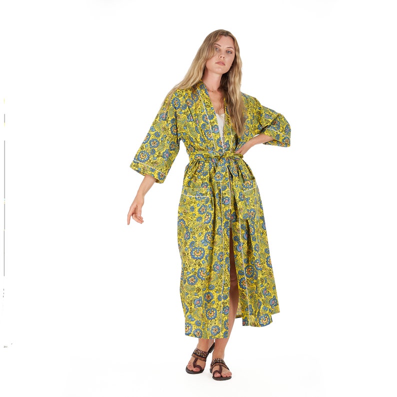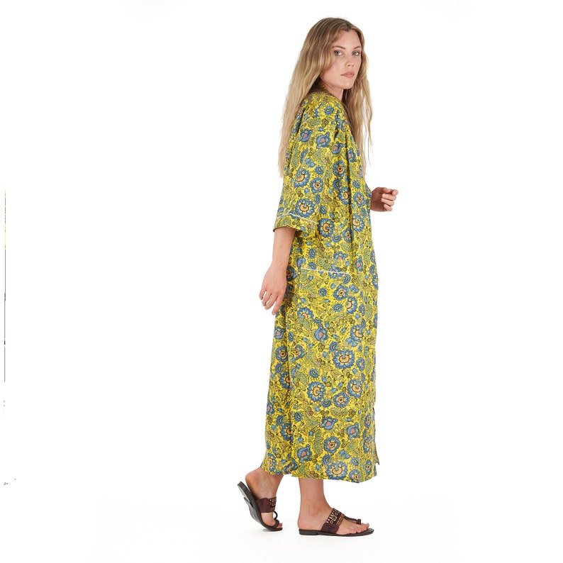 A beautiful Frida Kahlo inspired kimono robe for a super price. Perfect as a kimono, robe or a kaftan. Made from super comfy light weight cotton cambric so treat yourself to ultimate comfort whether you are simply winding up at night, getting ready for the morning or just cozying up in your lounge to binge watch a move on Netflix.