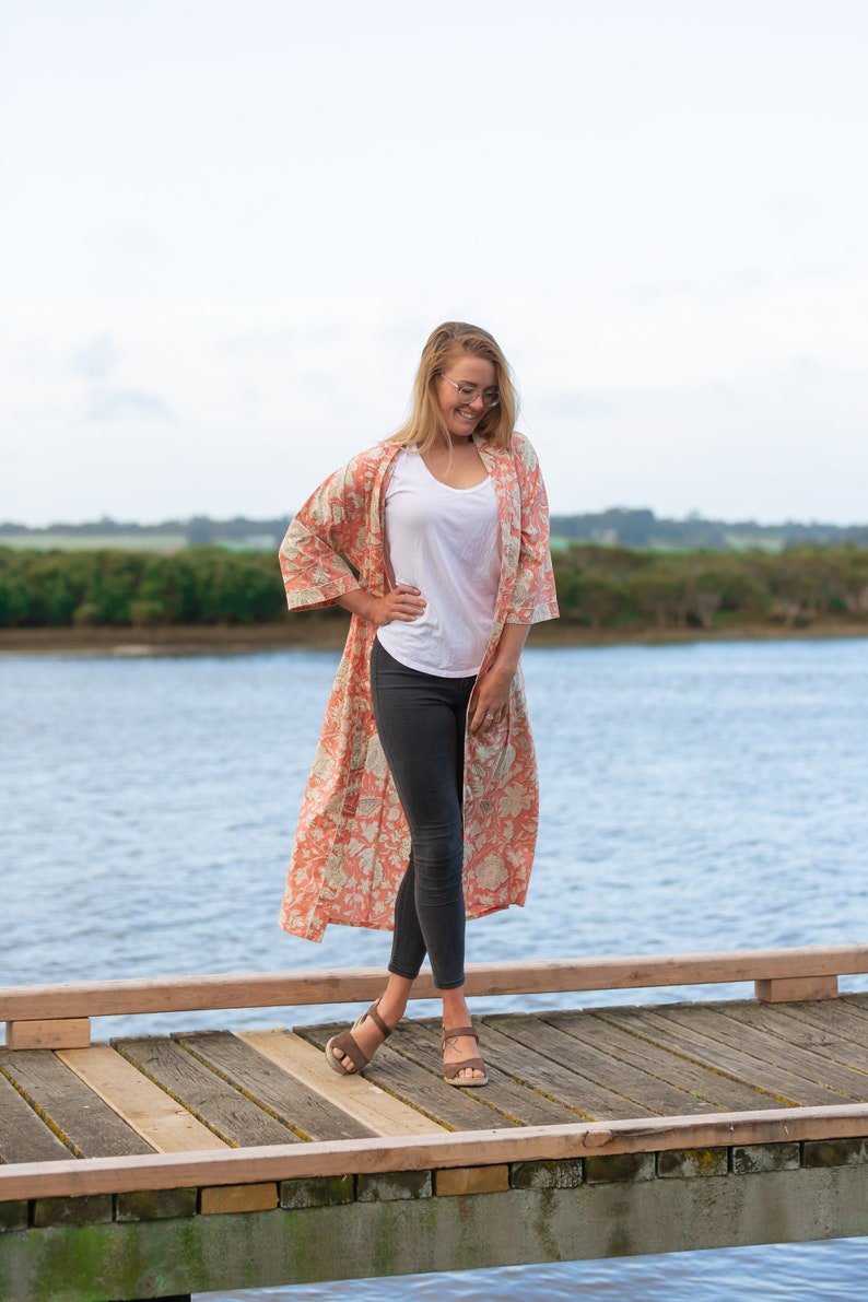 A beautiful Frida Kahlo inspired kimono robe for a super price. Perfect as a kimono, robe or a kaftan. Made from super comfy light weight cotton cambric so treat yourself to ultimate comfort whether you are simply winding up at night, getting ready for the morning or just cozying up in your lounge to binge watch a move on Netflix.