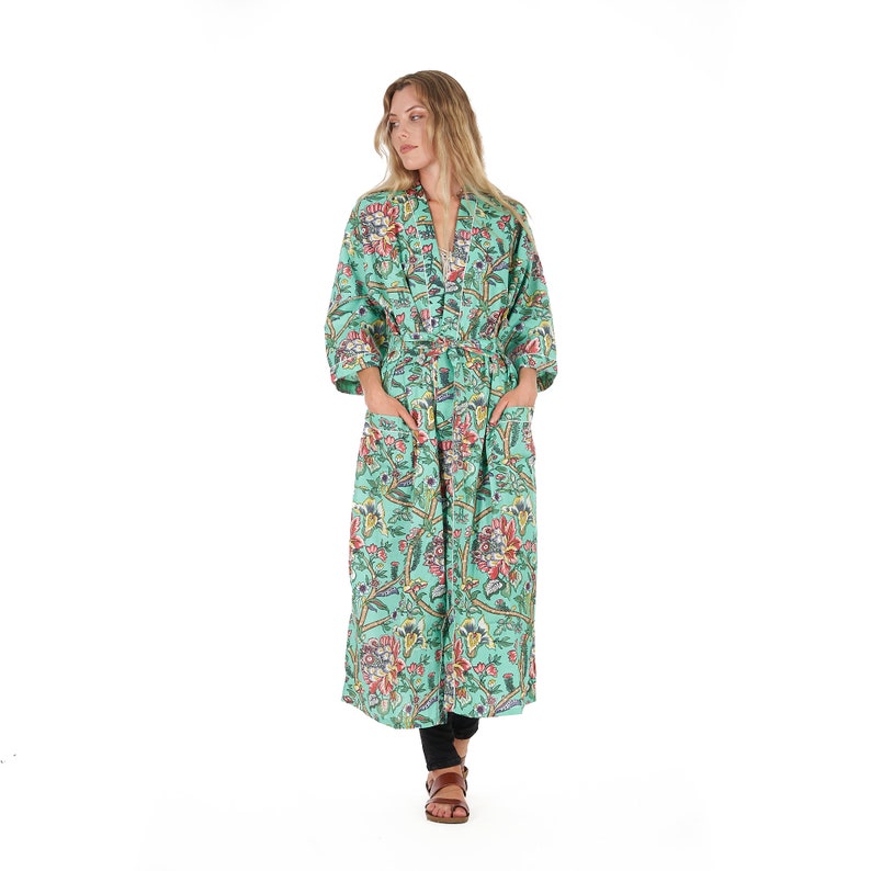 A beautiful Frida Kahlo inspired kimono robe for a super price. Perfect as a kimono, robe or a kaftan. Made from super comfy light weight cotton cambric so treat yourself to ultimate comfort whether you are simply winding up at night, getting ready for the morning or just cozying up in your lounge to binge watch a move on Netflix.