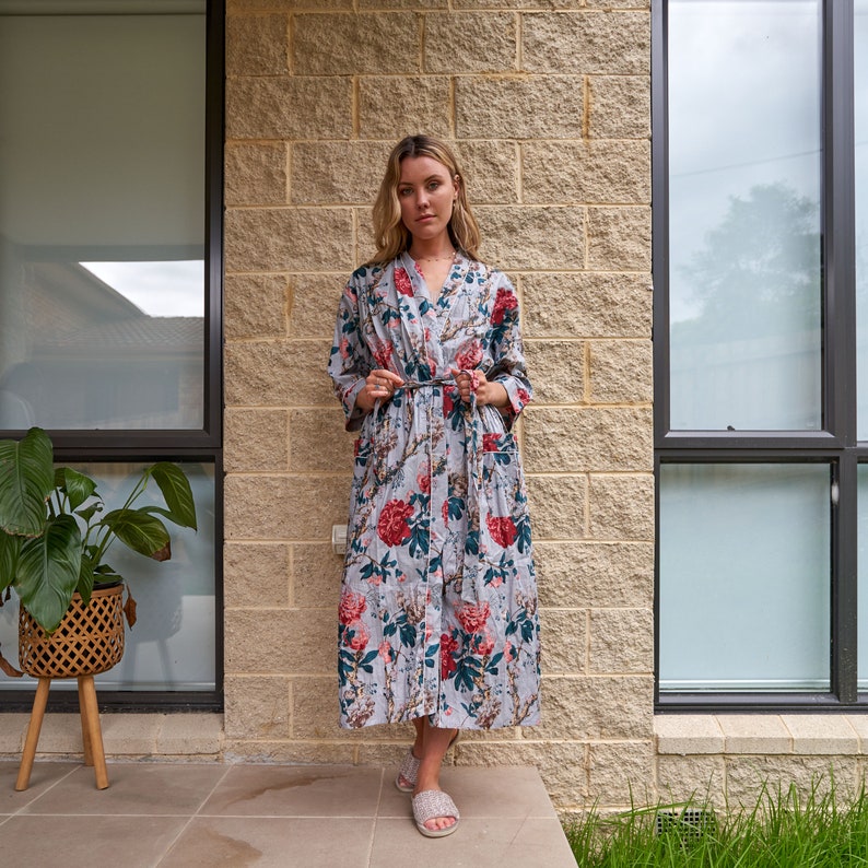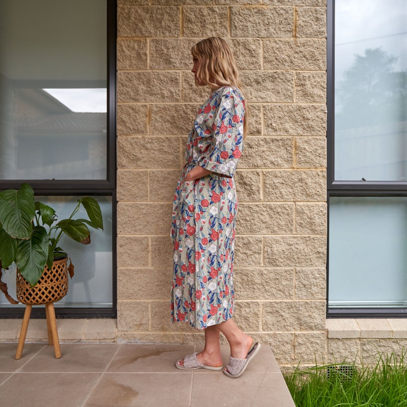 A beautiful Frida Kahlo inspired kimono robe for a super price. Perfect as a kimono, robe or a kaftan. Made from super comfy light weight cotton cambric so treat yourself to ultimate comfort whether you are simply winding up at night, getting ready for the morning or just cozying up in your lounge to binge watch a move on Netflix.
