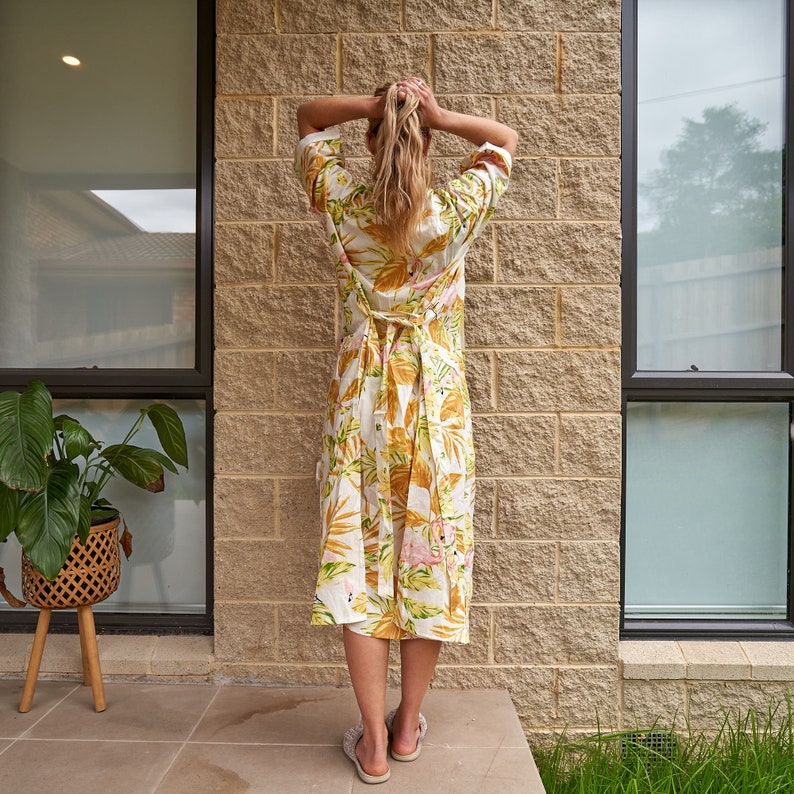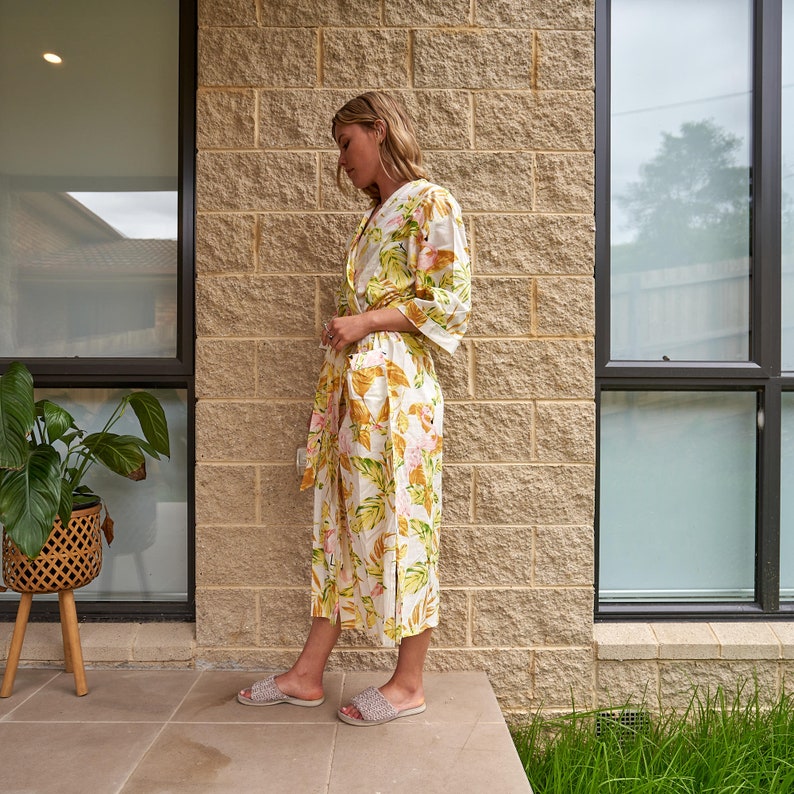 A beautiful Frida Kahlo inspired kimono robe for a super price. Perfect as a kimono, robe or a kaftan. Made from super comfy light weight cotton cambric so treat yourself to ultimate comfort whether you are simply winding up at night, getting ready for the morning or just cozying up in your lounge to binge watch a move on Netflix.