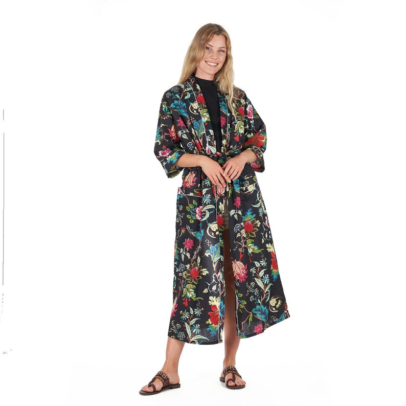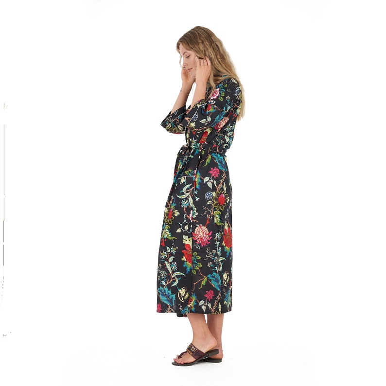 A beautiful Frida Kahlo inspired kimono robe for a super price. Perfect as a kimono, robe or a kaftan. Made from super comfy light weight cotton cambric so treat yourself to ultimate comfort whether you are simply winding up at night, getting ready for the morning or just cozying up in your lounge to binge watch a move on Netflix.