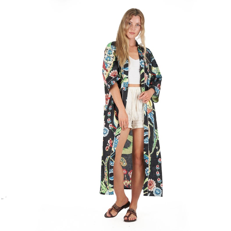 A beautiful Frida Kahlo inspired kimono robe for a super price. Perfect as a kimono, robe or a kaftan. Made from super comfy light weight cotton cambric so treat yourself to ultimate comfort whether you are simply winding up at night, getting ready for the morning or just cozying up in your lounge to binge watch a movie on Netflix.