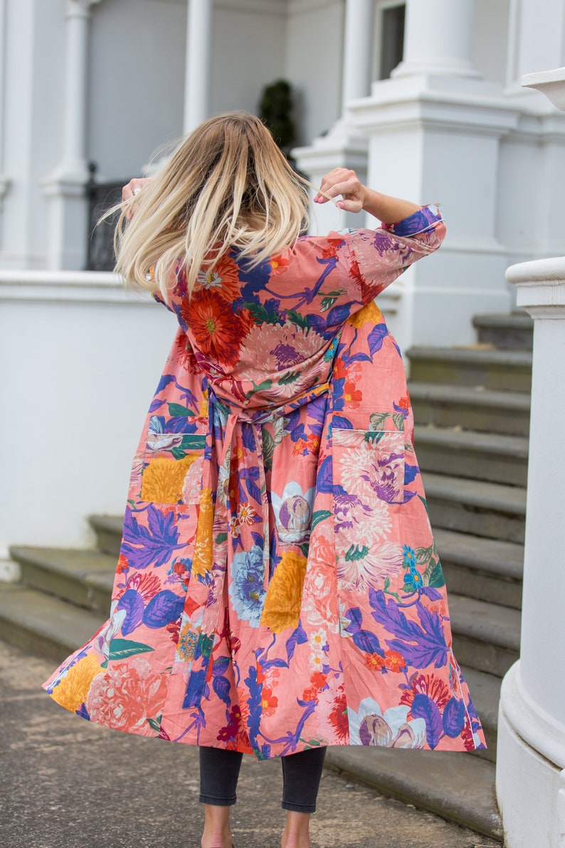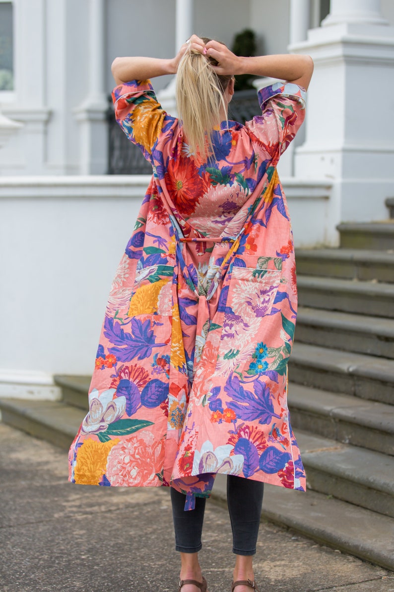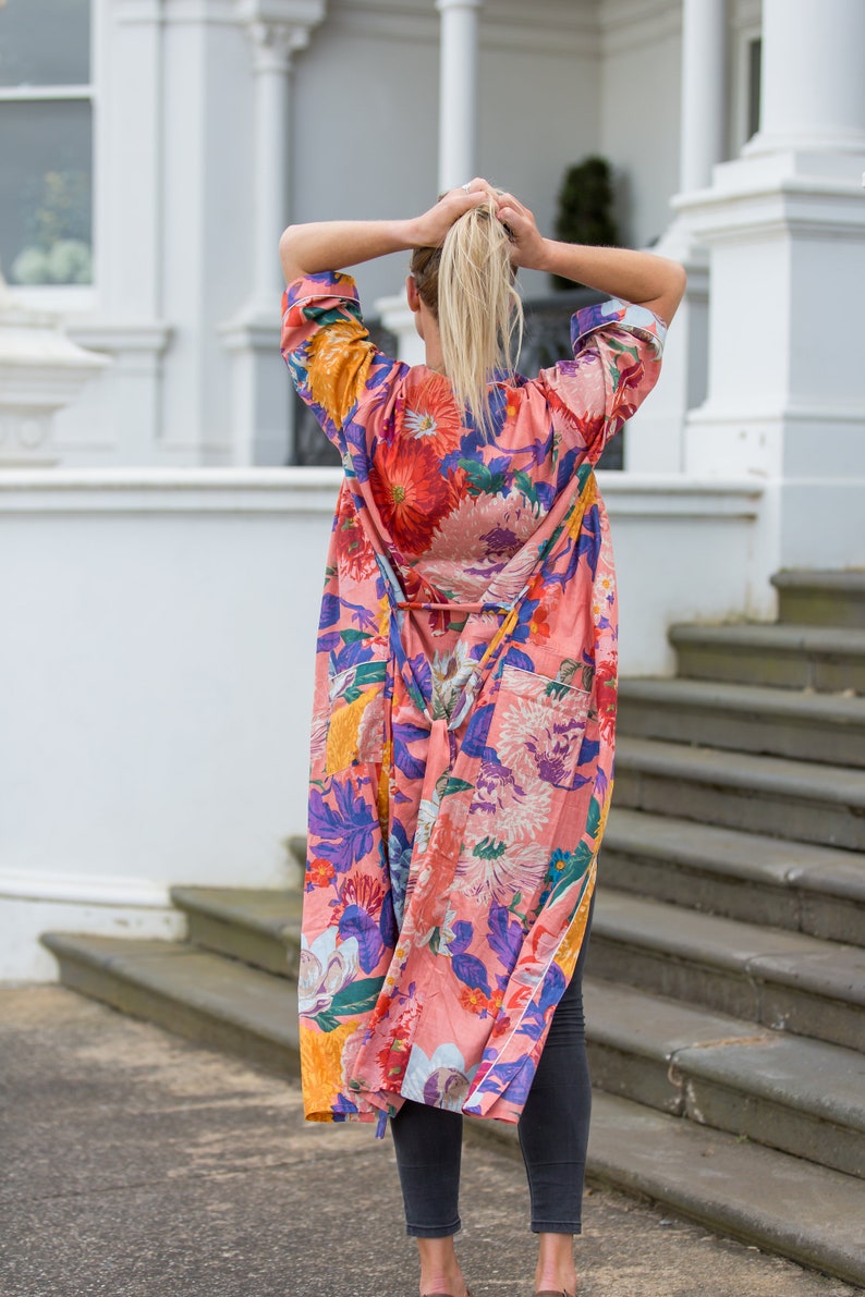 A beautiful Frida Kahlo inspired kimono robe for a super price. Perfect as a kimono, robe or a kaftan. Made from super comfy light weight cotton cambric so treat yourself to ultimate comfort whether you are simply winding up at night, getting ready for the morning or just cozying up in your lounge to binge watch a movie on Netflix.