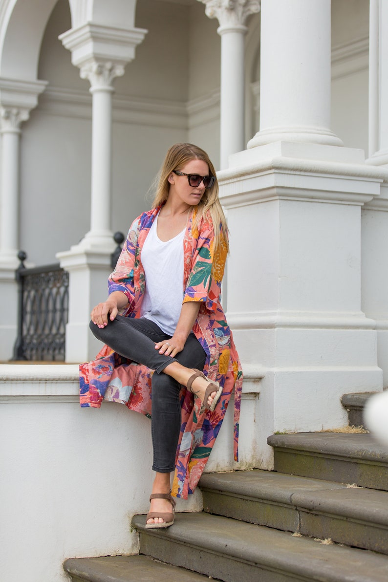 • Perfect use as a Kimono and Bathrobe. Can can be worn as a Kaftan, Cardigan or as a oversizes top over a dress.