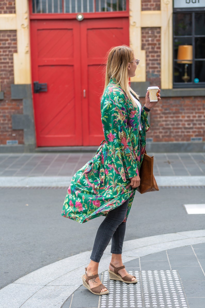 A beautiful Frida Kahlo inspired kimono robe for a super price. Perfect as a kimono, robe or a kaftan. Made from super comfy light weight cotton cambric so treat yourself to ultimate comfort whether you are simply winding up at night, getting ready for the morning or just cozying up in your lounge to binge watch a movie on Netflix.