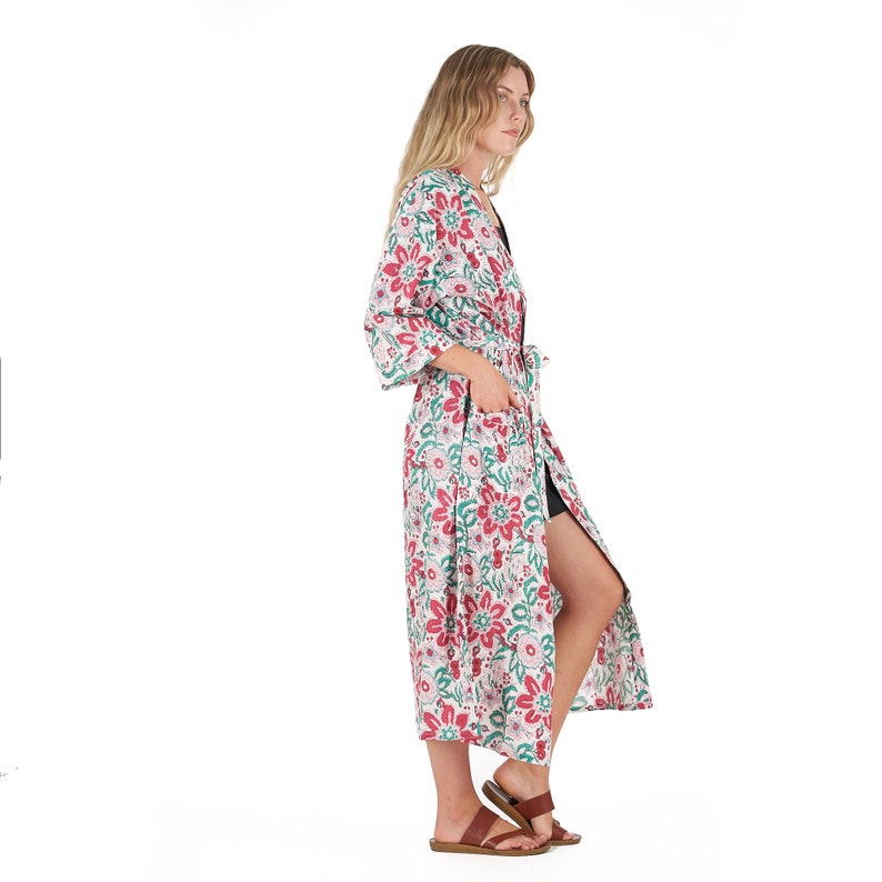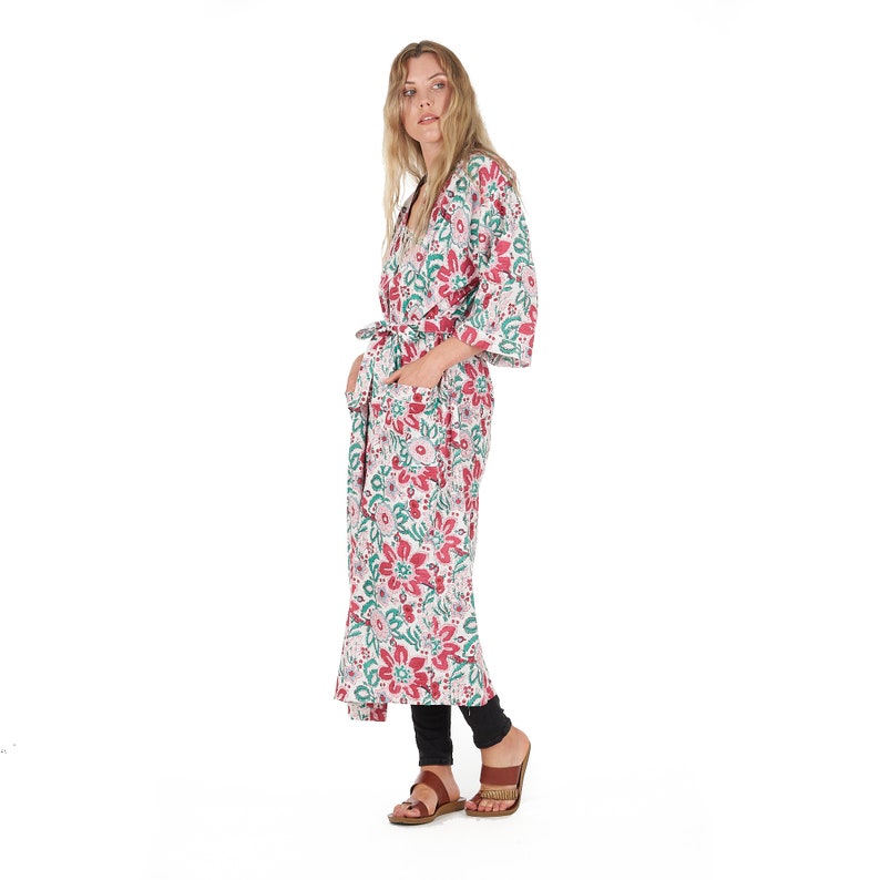 A beautiful Frida Kahlo inspired kimono robe for a super price. Perfect as a kimono, robe or a kaftan. Made from super comfy light weight cotton cambric so treat yourself to ultimate comfort whether you are simply winding up at night, getting ready for the morning or just cozying up in your lounge to binge watch a move on Netflix.