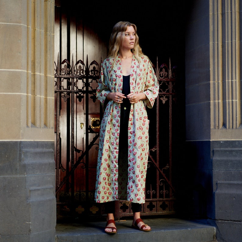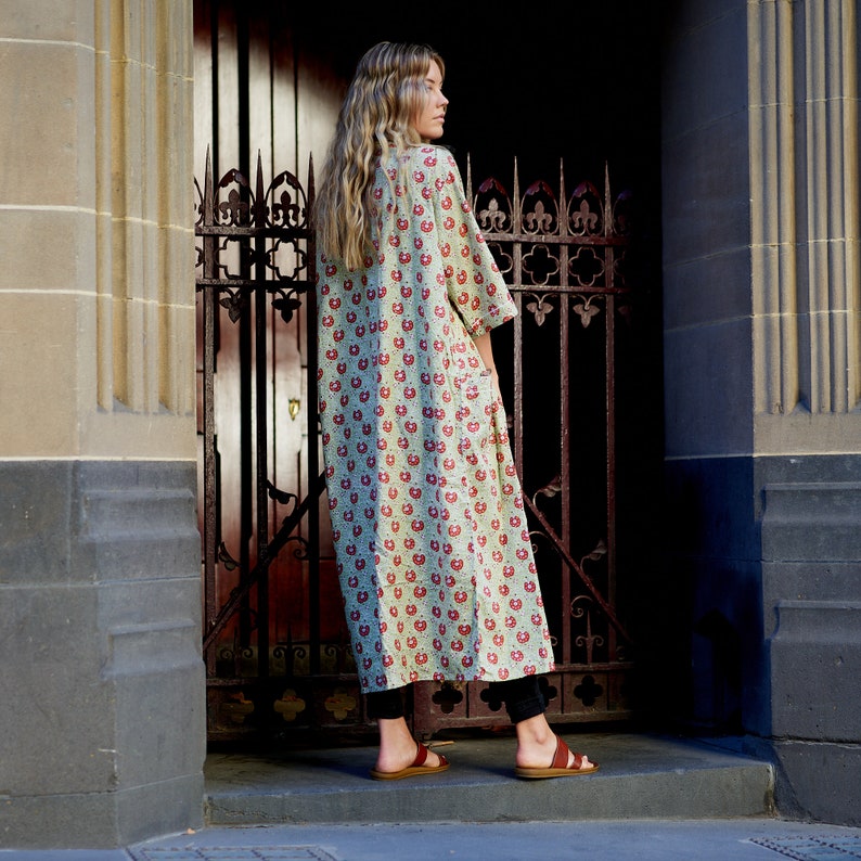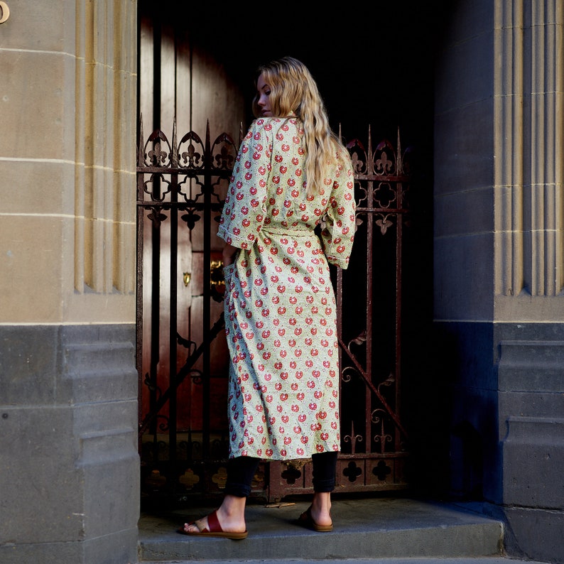 A beautiful Frida Kahlo inspired kimono robe for a super price. Perfect as a kimono, robe or a kaftan. Made from super comfy light weight cotton cambric so treat yourself to ultimate comfort whether you are simply winding up at night, getting ready for the morning or just cozying up in your lounge to binge watch a move on Netflix.
