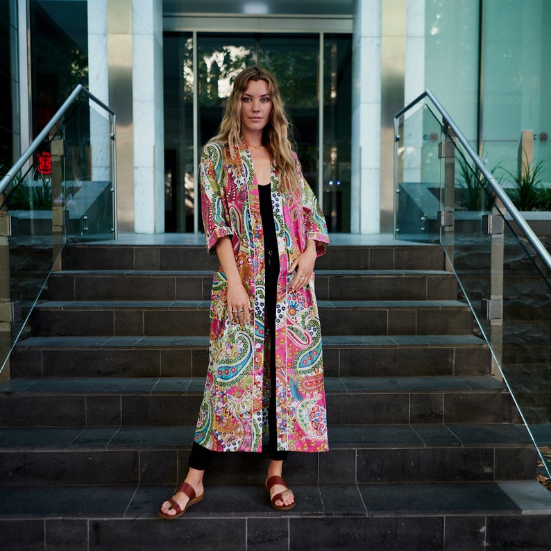 • Perfect use as a Kimono and Bathrobe. Can can be worn as a Kaftan, Cardigan or as a oversizes top over a dress.