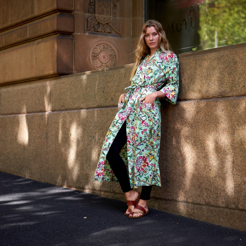 A beautiful Frida Kahlo inspired kimono robe for a super price. Perfect as a kimono, robe or a kaftan. Made from super comfy light weight cotton cambric so treat yourself to ultimate comfort whether you are simply winding up at night, getting ready for the morning or just cozying up in your lounge to binge watch a move on Netflix.