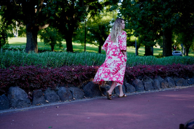 A beautiful Frida Kahlo inspired kimono robe for a super price. Perfect as a kimono, robe or a kaftan. Made from super comfy light weight cotton cambric so treat yourself to ultimate comfort whether you are simply winding up at night, getting ready for the morning or just cozying up in your lounge to binge watch a move on Netflix.