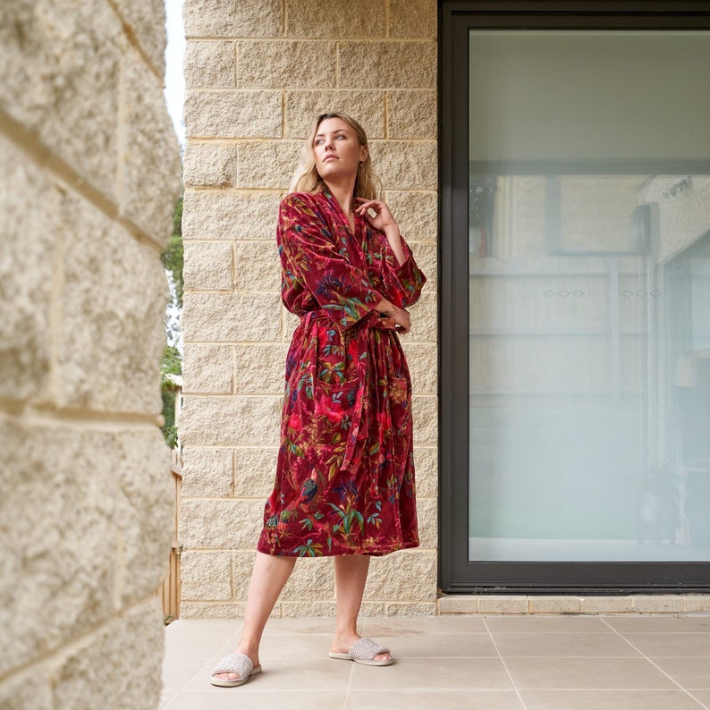 A beautiful Frida Kahlo inspired kimono robe for a super price. Perfect as a kimono, robe or a kaftan. Made from super comfy cotton velvet so treat yourself to ultimate comfort whether you are simply winding up at night, getting ready for the morning or just cozying up in your lounge to binge watch a move on Netflix.